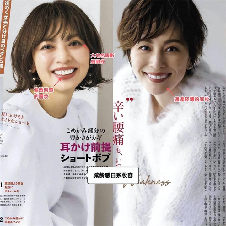 中年女人化妆,千万不能用力过猛,拒绝落入“人设圈套”,懂得打破常规化,才会更显年轻,像这种减灵感的日系妆容,底妆通透轻薄,大地色眼影+细眼线,涂上偏透明感的唇妆,减龄10岁不止。