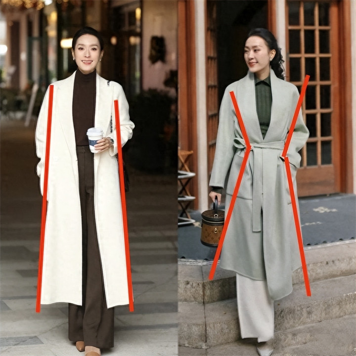 穿搭的前提,是选对合适的服装版型,秋天最常见的长大衣,在版型上就要强调轮廓线条,例如直筒版型和X型最为常见,前者很适合身材高挑纤瘦的女性,超级显高,还很率性高级,后者更适合微胖的梨形身材,能轻松凸显腰身比例。