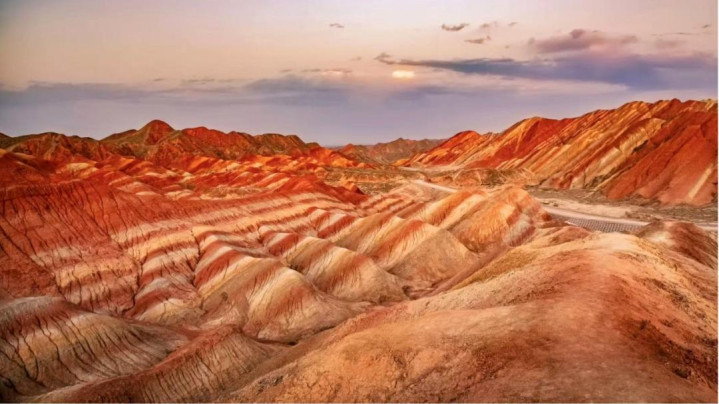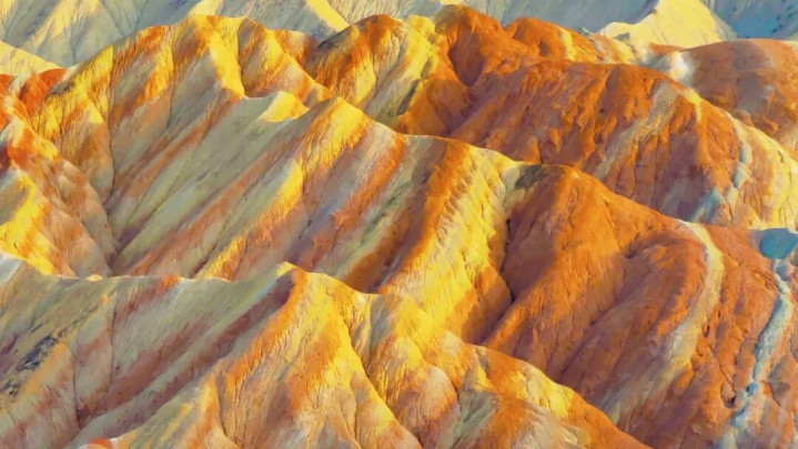 甘肃、新疆被尘土覆盖的土黄色丹霞