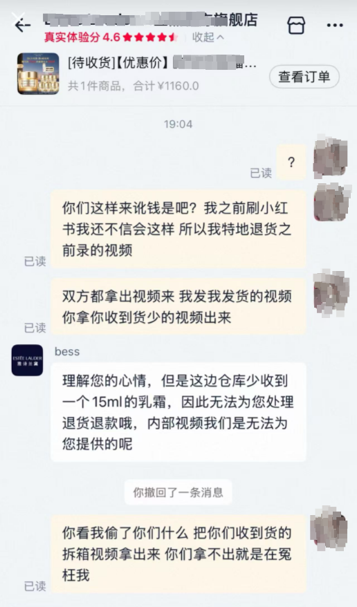 尽管她提供了退货打包视频与包裹重量凭证,商家起初仍拒绝沟通,直至她在社交平台曝光此事,才最终获得全额退款,“但他们只是退了钱,没有一句‘对不起’,就像什么都没发生。”